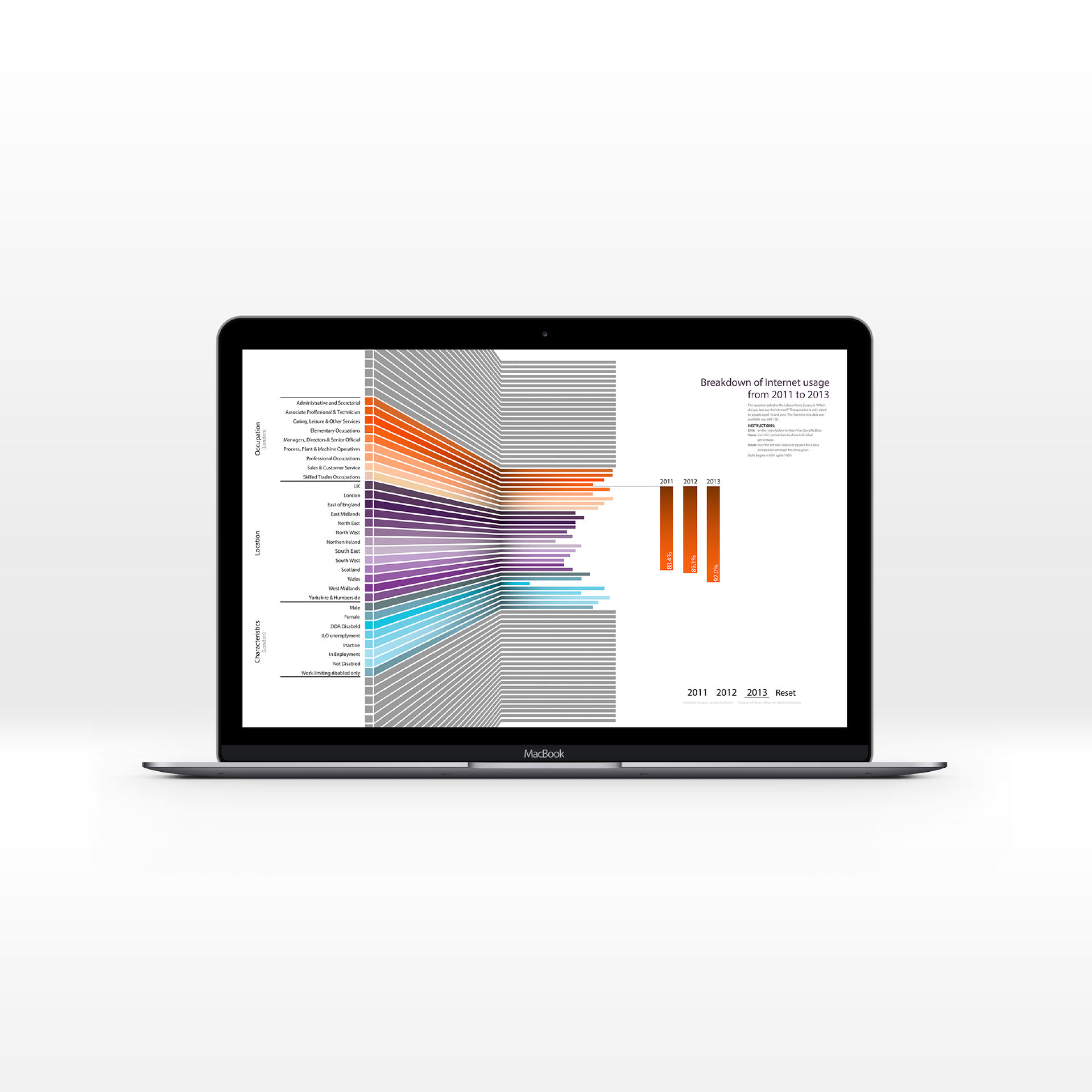 Screen Design, an interactive piece made in Adobe Animate (Flash). The aim was to create an interactive piece of design, showing a specific data, Internet Data, and design it. The design, is very simple. I wanted to base it on simple bar charts, as that is one of the easiest and most recognizable forms of data, the only thing I added was the effect of 3D which provides it with a different aspect. Unfortunately, Behance does not support Animate files (.swf) and I couldn't upload it on here, but I have added a video of me using it briefly.